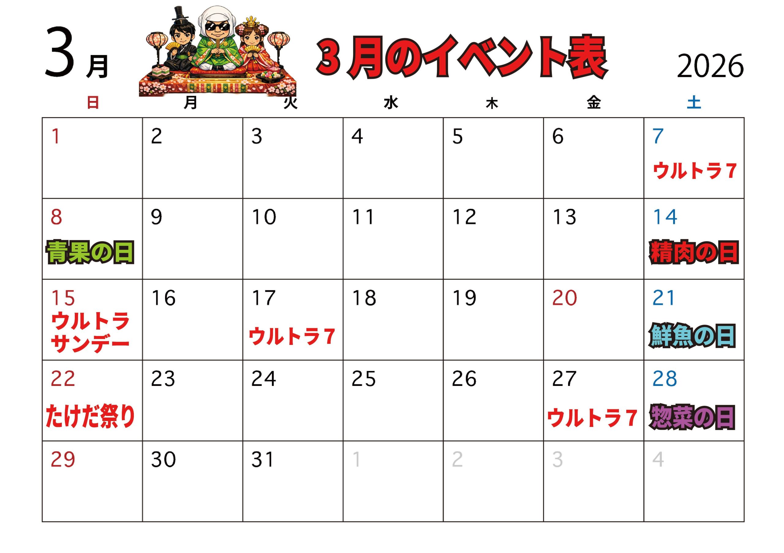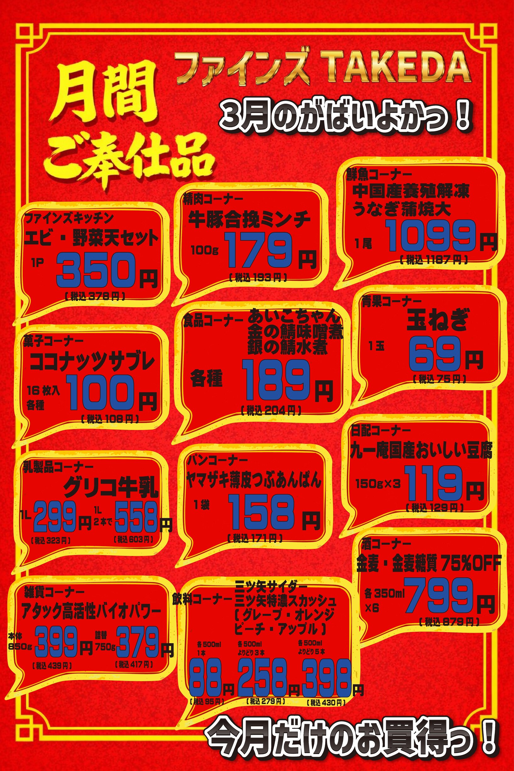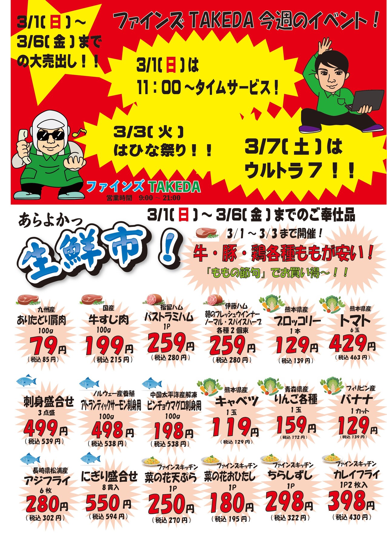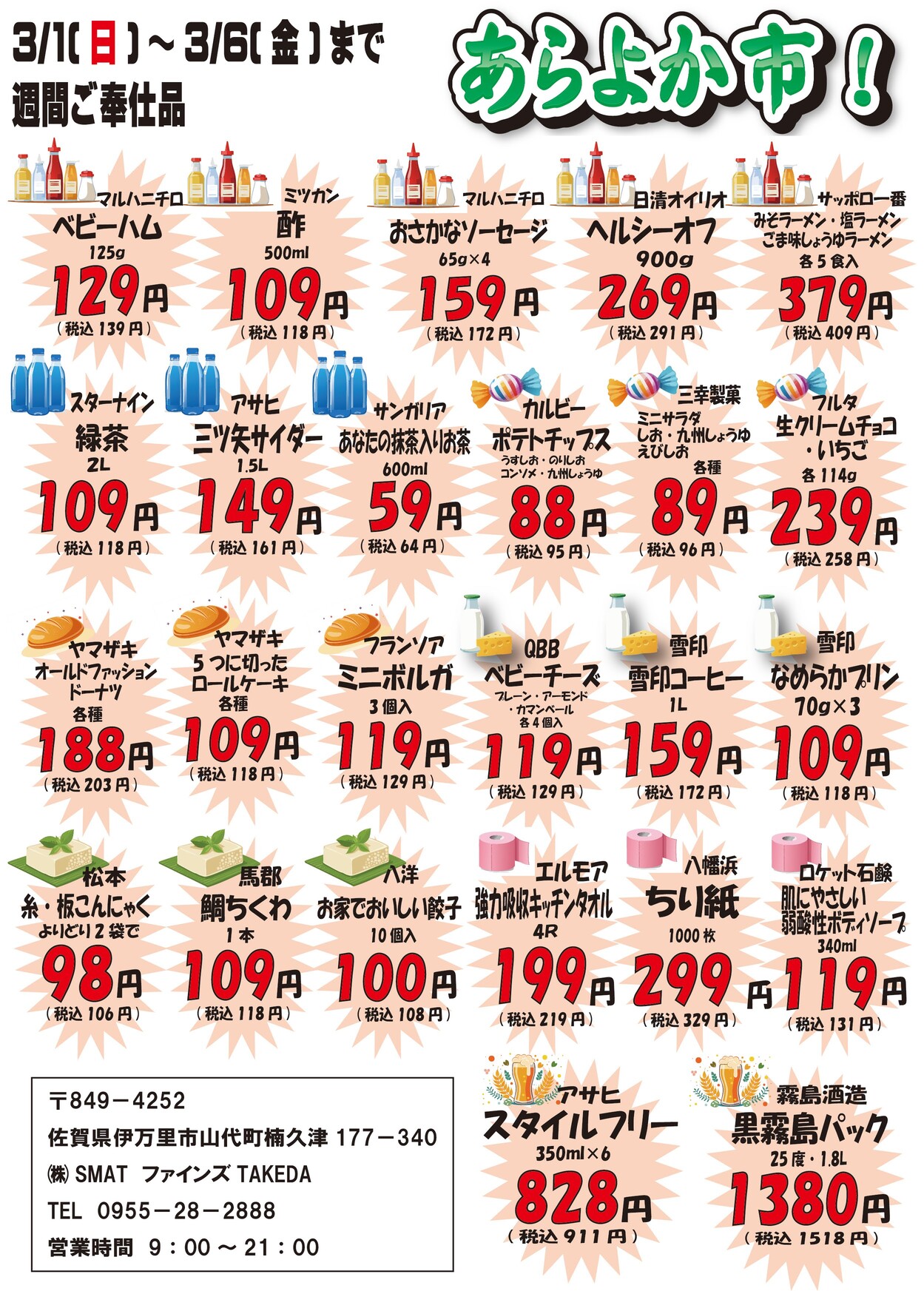 毎日日替わりのお買い得品を掲載!夕方4時からたけだに行ってお買いどくゥ〜♪